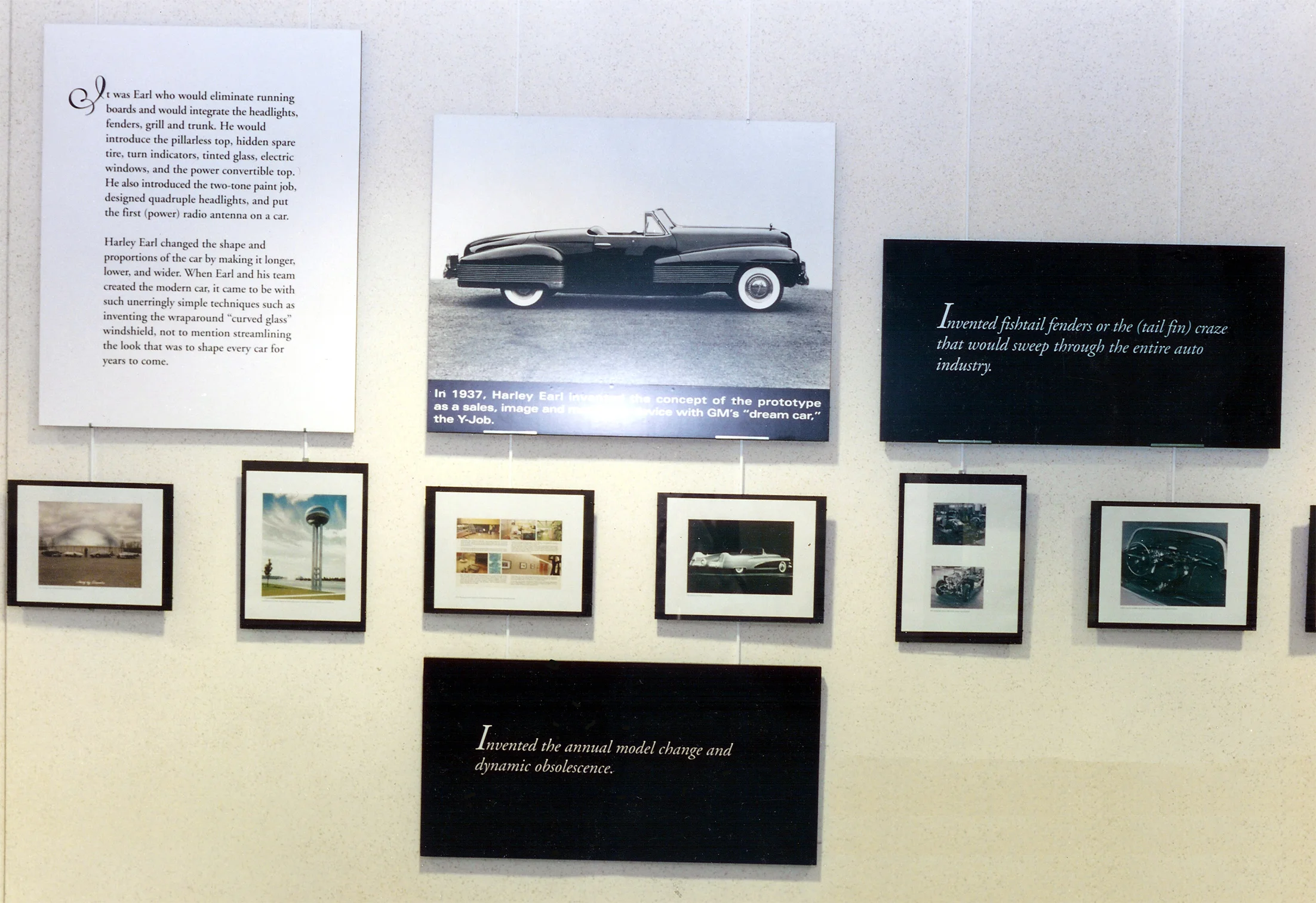 Automotive Hall of Fame testimonial, "Grandson Richard Earl, who has spent much of the last decade bringing the memory and accomplishments of Harley Earl to the forefront, created the display. He says an appreciation of the underlying strengths of the automotive industry as it is today requires an equal appreciation of the historical reality."