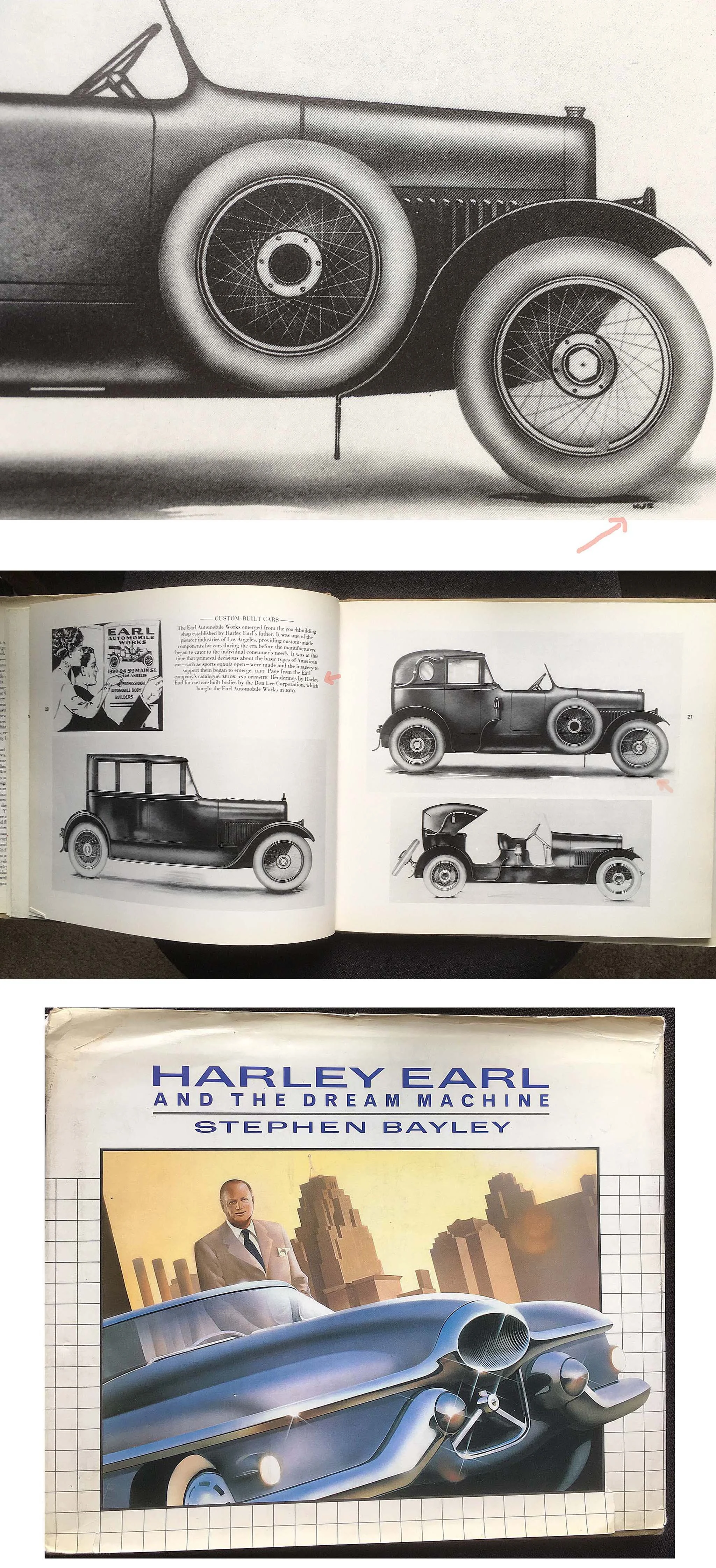 Before arriving at General Motors, “HJE” was how the artist-engineer signed his art works. Caption featured below on pg-20 of this 1983 biography states, Renderings by Harley Earl.